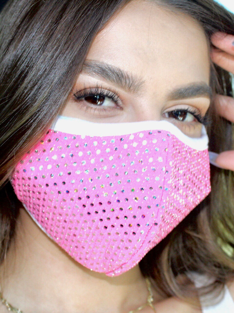 Bloom Pink x Silver Bling x White Fashion Face Mask